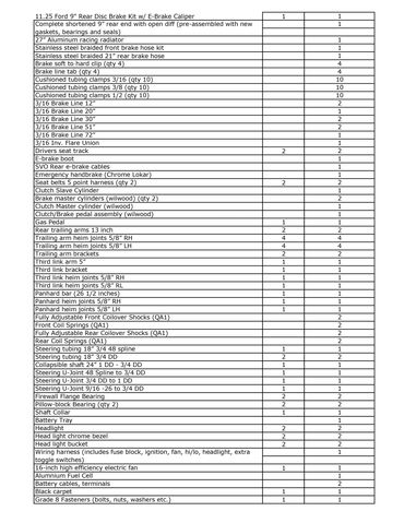*Parts you will need to provide to finish the car: engine, transmission, driveshaft, wheels & tires, paint, and a battery.