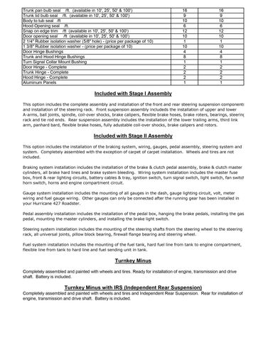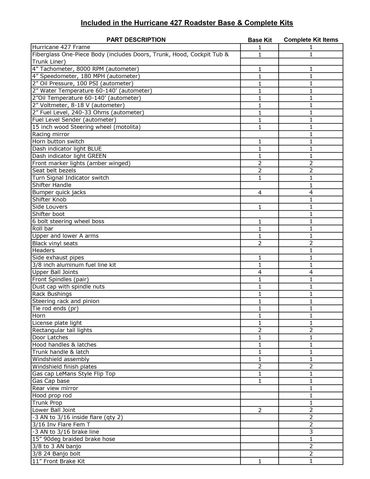 Hurricane 427 Roadster Complete Kit $35,995.00